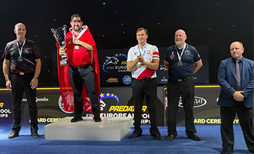 Swisspool gratuliert Sascha Specchia zum Vize-Europameistertitel im 9-Ball der Kategorie 45+. Ursula Habersaat erhält Fairplay Award in der Kategorie Ladies.