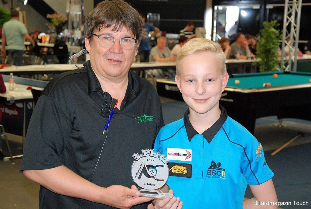 Bei den Schülern trat Silvan Starkermann und Levin Bätscher an. Levin konnte bei den Schülern ein Spiel gleich mit 3-0 gewinnen, bevor dann mit demselben Resultat leider Schluss war. Silvan machte dies doch besser. Er spielte sich mühelos durch seine Partien und qualifizierte sich souverän für das Finaltableau der Schüler. Auch da konnte er sein Spiel weiterziehen und musste sich erst im Halbfinale vom Deutschen Wasner mit 0-4 geschlagen geben. Aber mit dem guten 3. Schlussrang kann Silvan sicherlich sehr zufrieden sein!