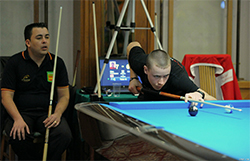 Sebastians Gegner war kein geringerer als der 10 Ball Weltmeister 2011 Huidji See aus Holland. Sebastian verschoss die 10 zu 3:0. Der Holländer holte auf und zwischenzeitlich war es ein ausgeglichenes Spiel, bevor der Schweizer die 10 zum 8:6 Sieg einlochte. Nachmittags hiess sein Gegner Vitaly Pavlukhin aus Russland. Gegen ihn so wie auch ein par Stunden später gegen den Belgier Moritz Lauwereyns verlor er 8:6 und beendete die Disziplin 10 Ball auf den 65. Rang.
