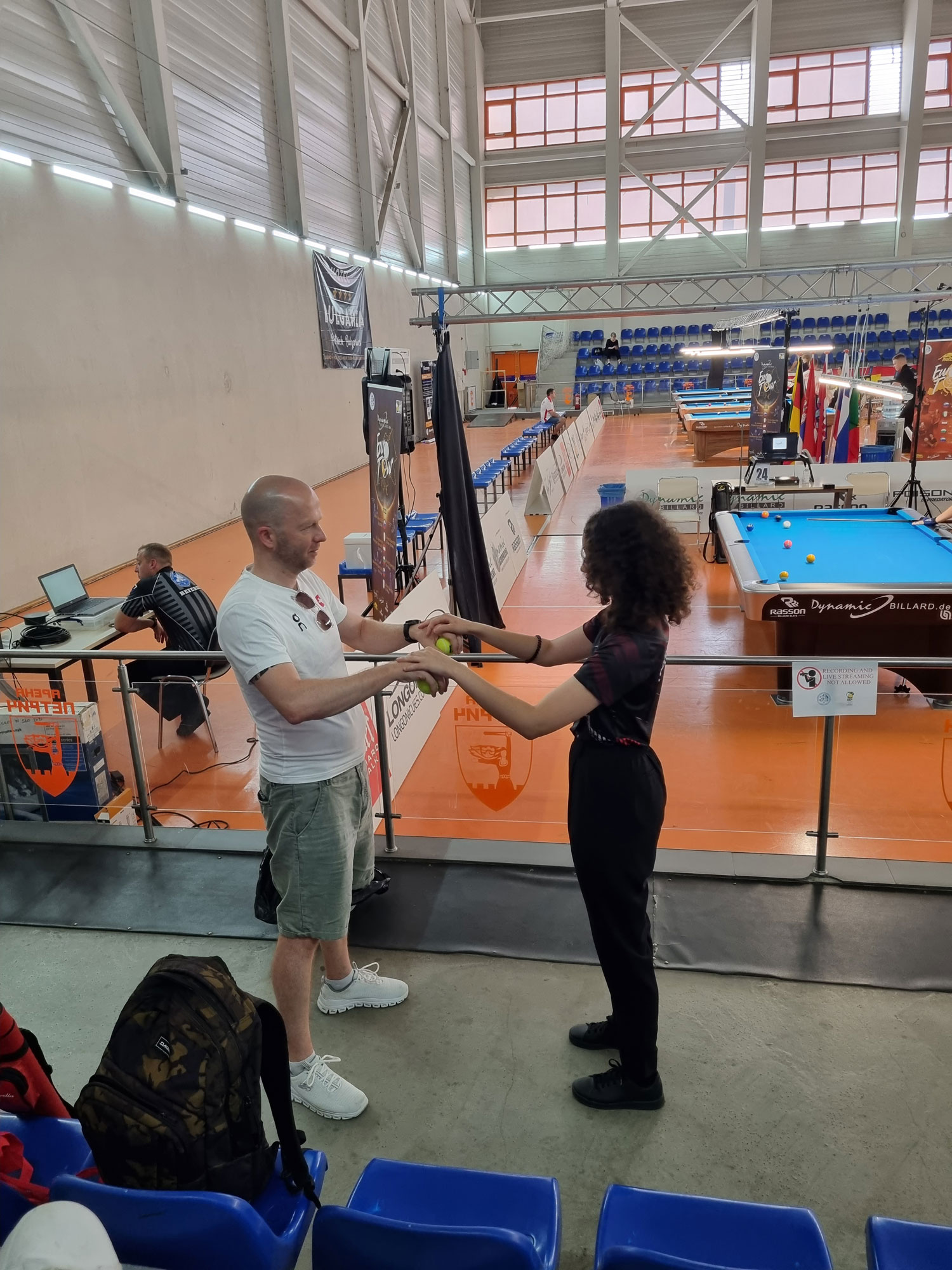 Als leise Medaillenhoffnung mit im mentalen Gepäck der ganzen Delegation war auch der 14/1 Titel von Silvan im letzten Jahr in Slowenien. In diesem Jahr startete Silvan nun bei den Junioren U19, wo sich das Spielniveau grundlegend anders anfühlt als bei den Schülern U17. 14/1 ist immer die erste Disziplin und angefeuert vom ganzen Team (besonders von den Mädchen, die immer noch kein 14/1 spielen dürfen!) funktionierte es dann doch nicht für ganz nach vorne. Man muss bedenken, dass an solchen Meisterschaften immer alles stimmen muss, um ganz nach vorne zu kommen. Vieles kann man selbst kontrollieren, auf Anderes hat man keinen Einfluss. Silvan wurde vom Polen Szimon Kural gestoppt, gegen den er bereits im zweiten Spiel verloren hatte. Dort schoss Silvan eine 76er Serie und trotzdem ging das Match an Kural. Für Anes war es die erste EM, dies gleich bei den Junioren, wo das Niveau wie bereits erwähnt enorm hoch ist. Sein erstes Spiel verlor er gegen den späteren Europameister in dieser Disziplin Yuma Dörner aus Deutschland. Das zweite Spiel wäre möglich gewesen zu gewinnen meinte Anes danach. Dies gab ihm Selbstvertrauen für die weiteren Disziplinen.
