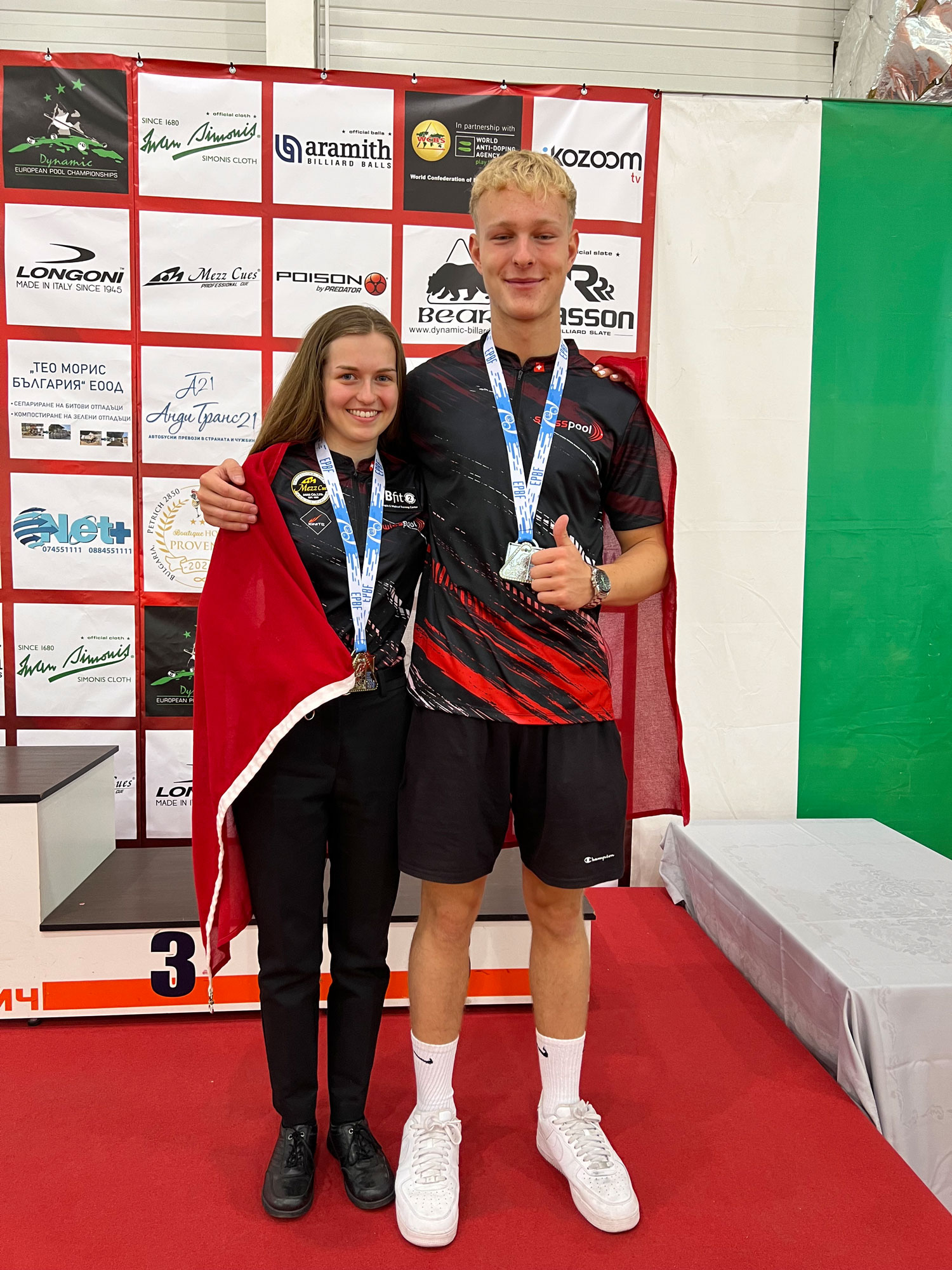Im 10 Ball durften dann auch die Girls U19 endlich mitmischen und die Motivation und Spielfreude war bei allen nach wie vor gross. Wie bereits erwähnt muss alles stimmen, um ganz nach vorne zu kommen, und das war in dieser Disziplin bei Silvan der Fall. Mit einem Sieg über Kural (PL) war er in der Winners Quali für die letzten 16. Hier musste er den Match abgeben gegen Montanari (IT). Mit Siegen über Cueli (ESP), Nowak (PL) und erneut Kural stand Silvan dann im Halbfinale! Ein packendes Spiel gegen Fortunski (PL) ging nach Hill Hill mit 7 zu 6 für Silvan zu Ende, und im Finale wartete Dennis Laszkowski (DE). Hier spielte der Deutsche nahezu perfekt! «Ich habe nicht viel falsch gemacht» meinte Silvan sichtlich zufrieden mit Silber und somit dem Vizeeuropameistertitel im 10 Ball. Herzlichen Glückwunsch, eine grandiose Leistung! Ob es für eine Nomination zur WM reicht, wird sich noch herausstellen. Die WM findet im November in Puerto Rico statt. Der EPBF versucht so viele Startplätze wie möglich zu bekommen und ebenso viele Spieler:innen hinzuschicken.