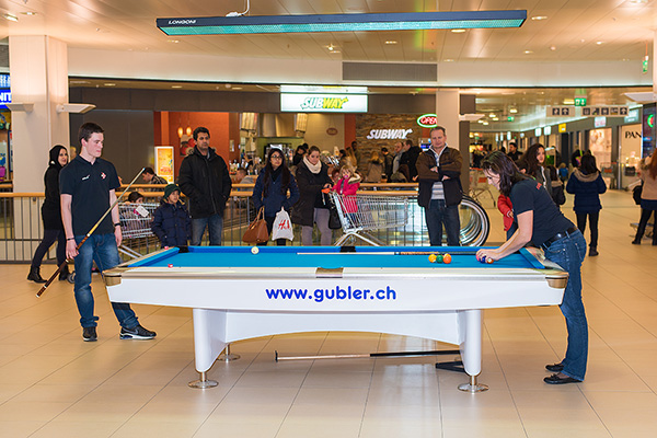 Bei vielen Kunden des Shoppylands stiess diese Präsentation auf grosses Echo. Jeweils morgens und nachmittags, wurde unser Sport von einer Delegation unserer Jugend-Nationalmannschaft den interessierten Personen näher gebracht. Die Jungs verstanden es, Fragen zu beantworten, die Menschen an den Tisch zu holen und mit ihnen eine Partie Pool zu spielen. Ein grosses Dankeschön an unsere Jungs.