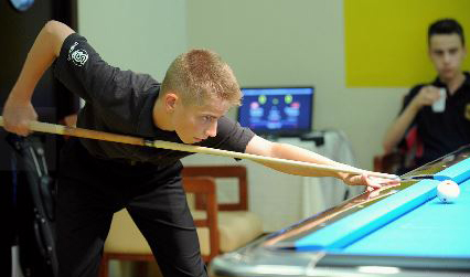 Eine etwas längere Anlaufzeit brauchte Sandro Kupper an seiner ersten EM. In der Startdisziplin 14/1 verlor er beide Spiele gegen den Deutschen Florian Zuewert und den Österreicher Daniel Guttenberger mit jeweils 20-100. Es war für ihn sicherlich ein lehrreicher Tag und seine ersten Siege sind nur eine Frage der Zeit.