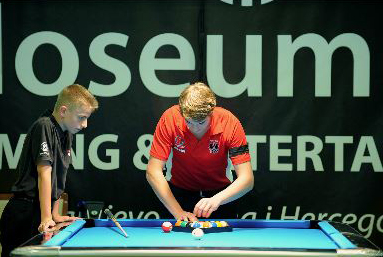 Nach der langen Anreise am Donnerstag sind wir gut im Hotel in Sarajevo angekommen und haben gleich die Zimmer bezogen. Sofort erhielten wir die Gelegenheit auf den Tischen einzuspielen und das Material zu testen. Es wurde sofort klar, dass es keine einfachen Tische mit sehr engen Löchern sind.Am Freitag konnte dann endlich mit den ersten Spielen begonnen werden. Das Eröffnungsspiel für die Schweiz hatte der jüngste der Schweizer; Sandro Volery im 14/1 und konnte dies gleich gegen den Bulgaren Nikolay Zhelev nach 2.5 Stunden mit 75-71 gewinnen. Er verlor dann die beiden nächsten Spiele gegen Eimantas Sveikauskas mit 24-75 und den Tschechen Bohdan Ivanets mit 22-75.