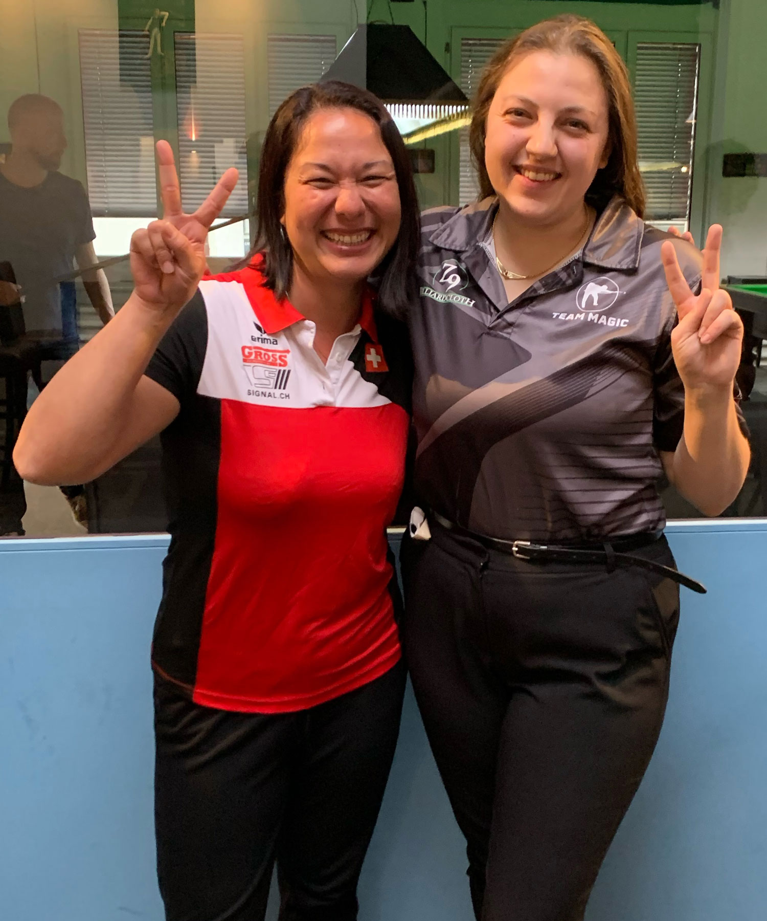 In einem 8-er-Tableau starteten alle Damen um 10.00 Uhr ihre 14-1-Partien. Innerhalb der Zweistundenzeitlimite gingen Christine Feldmann, Cindy Keller und Yini Gaspar mit 75 Punkten und Catherine Schneeberger mit 59 Punkten aus ihren Matches als Siegerinnen hervor. Diese Zeitlimite entschied schliesslich auch die nächste Gewinnerrunde von Christine Feldmann und Cindy Keller. Letztere sicherte sich nämlich mit einem Punkt Vorsprung nach zwei Stunden mit 55:54 ihre Medaille. Ebenfalls jubeln konnte Yini Gaspar mit ihrem souveränen 75:20-Sieg über Catherine Schneeberger. Diese hielt im Hoffnungslauf lange mit Claudia von Rohr mit, musste sich aber am Ende mit 75:56 geschlagen geben. Gemeinsam mit Claudia von Rohr freute sich Christine Feldmann über das Edelmetall, nachdem sie 75:16 über Sabrina Cisternino gesiegt hatte.