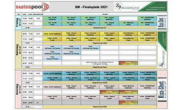 Die Durchführung der vierten und letzten Disziplin 14-1 der Schweizermeisterschaften erfolgte am Samstag, 13. November. Nächstes Wochenende fechten die nun feststehenden Gewinner:innen der vier Disziplinen 8-Ball, 9-Ball, 10-Ball und 14-1 während den SM-Endrunden 2021 in Staufen die Medaillenfarbe aus.